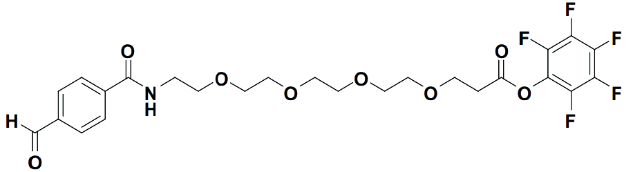 - ADCs linker, 2,3,4,5,6-pentafluorophenyl 1-[(4-formylphenyl)formamido]-3,6,9,12-tetraoxapentadecan-15-oate is a linker with aldehyde functionality for antibody-drug-conjugation (ADC).