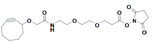 - ADCs linker, 2,5-dioxopyrrolidin-1-yl 3-(2-(2-(2-(cyclooct-2-ynyloxy)acetamido)ethoxy)ethoxy)propanoate is a click linker for antibody-drug-conjugation (ADC).