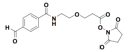 - ADCs linker, 2,5-Dioxopyrrolidin-1-yl 3-(2-(4-formylbenzamido)ethoxy)propanoate is a linker with aldehyde functionality for antibody-drug-conjugation (ADC).