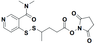 - 2,5-dioxopyrrolidin-1-yl 4-((3-(dimethylcarbamoyl)pyridin-4-yl)disulfanyl)pentanoate