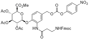 - (2S,3S,4S,5R,6S)-methyl-6-(2-(3-((Fmoc-amino)propanamido)-4-PNB-3,4,5-triacetoxy-tetrahydro-2H-pyran-2-carboxylate is a β-Glucuronide linker for bio-conjugation.
