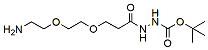 Amino-PEG2-t-Boc-Hydrazide is a PEG derivative containing an amino group and a Boc-protected hydrazide. The hydrophilic PEG spacer increases solubility in aqueous media. The amino group is reactive with carboxylic acids, activated NHS esters, carbonyls (ketone, aldehyde) etc. The Boc can be deprotected under mild acidic conditions to form a reactive hydrazide, which can then be coupled with various carbonyl groups.
