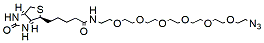 Biotin-PEG6-azide is PEG derivative containing a biotin group and an azide group. The azide group can react with either alkyne moiety in Cu(I)-catalyzed Click Chemistry reaction or DBCO moiety in copper-free Click Chemistry reaction to form a stable triazole linkage. The hydrophilic PEG spacer increases solubility in aqueous media of the molecules conjugated to the biotin compound. It also helps to minimize steric hindrance involved with the binding to avidin molecules.