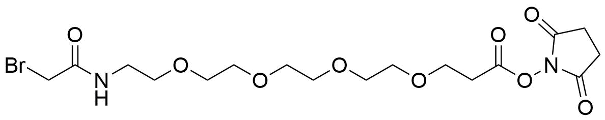 Bromoacetamido-PEG4-NHS ester is a PEG derivative containing a bromide group and an NHS ester. The hydrophilic PEG spacer increases solubility in aqueous media. The bromide (Br) is a very good leaving group for nucleophilic substitution reactions. The NHS ester can be used to label the primary amines (-NH2) of proteins, amine-modified oligonucleotides, and other amine-containing molecules.
