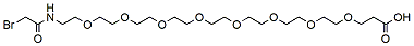 Bromoacetamido-PEG8-acid is a PEG derivative containing a bromide group and a terminal carboxylic acid. The hydrophilic PEG spacer increases solubility in aqueous media. The bromide (Br) is a very good leaving group for nucleophilic substitution reactions. The terminal carboxylic acid can be reacted with primary amine groups in the presence of activators (e.g. EDC, or DCC) to form a stable amide bond.