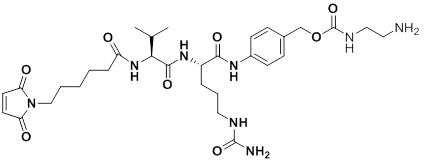 MC-vc-PAB-NH2 is a cathepsin cleavable ADC peptide linker. The maleimide group can react with a thiol group to form a covalent bond. The amino group is reactive with carboxylic acids, activated NHS esters, carbonyls (ketone, aldehyde) etc.