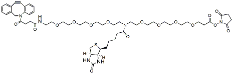 N-(DBCO-PEG4)-N-Biotin-PEG4-NHS is a linker for bio-conjugation that contains a biotin group, a terminal DBCO group and a terminal NHS group linked through a linear PEG chain.