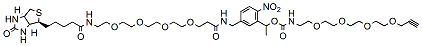 PC-Biotin-PEG4-PEG4-alkyne is a click linker for bio-conjugation that contains a biotin group and a terminal alkyne group linked through a linear PEG chain.