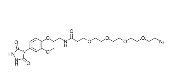 PTAD-PEG4-N3 is a click linker for bio-conjugation that contains a terminal N3 group and a PTAD group linked through a linear PEG chain.