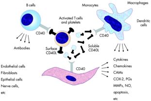 CD40 serves as an important role in the pathogenesis of inflammation and autoimmunity. Besides, B cell CD40 directly activates cells, which enables to induce autoantibody production. CD154 is the ligand for CD40 and it is expressed on activated T cells and enables interactions with APC during the cognitive phase of the immune response, as well as directing effector T cell-dependent B cell activation. However, it has been reported that blocking CD40-CD154 interactions may either prevent or alleviate diseases, including insulin dependent diabetes mellitus, arthritis, and systemic lupus erythematosus.
