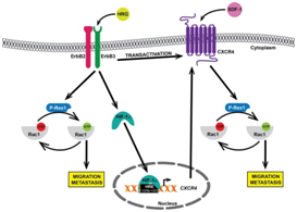 Generally, ERBB3 is co-expressed with other RTKs in cancer cells. It primarily enhances tumor initiation and progression by activation of the oncogenic PI-3 K/Akt signaling. Due to its role in therapeutic resistance, the ERBB3/PI-3 K/Akt pathway is the main cause of treatment failure in cancer therapy. Besides, ERBB3 serves an essential role in the development of a variety of human cancers, such as platinum-resistant/refractory ovarian cancer, erbB2-overexpressing (erbB2+) breast cancer, EGFR tyrosine kinase inhibitor (TKI)-resistant non-small cell lung cancer (NSCLC), as well as castration-resistant prostate cancer (CRPC). At present, a number of anti-ERBB3 monoclonal Abs that prevent ligand-induced activation of erbB3 have displayed significant antitumor activity in vitro and in vivo, for example, U3-1287/AMG 888 (Amgen Inc., Thousand Oaks, CA), MM-121 and MM-111 (Merrimack Pharmaceuticals, Cambridge, MA).