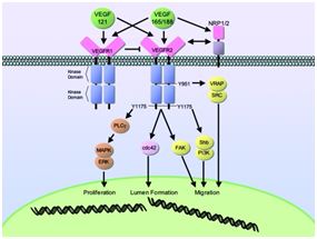 FLT1, also named as VEGFR1, is an elusive member of the VEGFR family. The VEGFR family contains three receptors: FLT1, FLK1 and FLT4 (also known as VEGFR1, VEGFR2 and VEGFR3, respectively). Among them, FLK1 binds VEGFA and VEGFC, and it is the major receptor which drives angiogenesis in healthy conditions and during disease. FLT4 binds VEGFC and VEGFD. However, FLT1 binds VEGFA, VEGFB and PlGF. FLT1 and FLK1 comprise seven extracellular immunoglobulin (Ig)-like domains, an intracellular tyrosine-kinase domain, and a trans-membrane region.