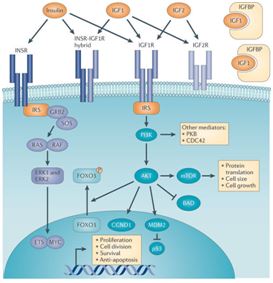 To date, the most important role of IGF2 is as a growth enhancing hormone during gestation. IGF2 functions through binding to the IGF-1 receptor and to the short isoform of the insulin receptor. It also serves an essential role in signalling antagonist by binding to the IGF2 receptor (the cation-independent mannose 6-phosphate receptor).
