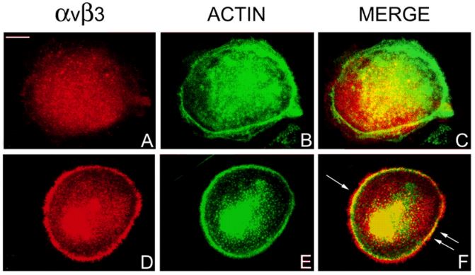 The alpha-v beta-3 is a member of the integrin superfamily of adhesion proteins. This class of receptors was named in 1986 to emphasize their role in integrating the intracellular cytoskeleton with the external milieu. Integrins are heterodimeric membrane glycoproteins. Multiple combinations of the 16α and 8 β subunits occur. These form 21 dimers which define the ligand binding specificity and function of the distinct receptors. The α chain is 120-180 kD in size and contains seven 60 amino acid long tandem repeats. The C-terminal 4 bind divalent cations via an E-F hand-like structure.