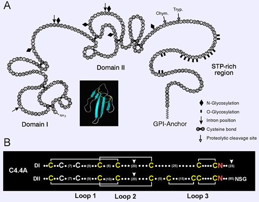 LY6/PLAUR domain containing 3 (LYPD3) is often referred to as C4.4A. It is comprised of ~350 amino acids and with a molecular weight at 36 kDa. The protein contains two UPAR/Ly6 domains and it is modified with both N- and O-glycans via post translational modifications. Normal LYPD3 expression is observed in placenta, skin, and urothelium. It is shown to bind laminin-1 and laminin-5. Other molecules that interact with LYPD3 include LGALS3, AGR2, and AGR3.