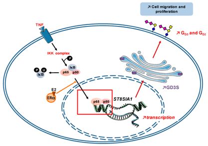 ST8 alpha-N-acetyl-neuraminide alpha-2,8-sialyltransferase 1 (ST8SIA1), also known as GD3S or SIAT8, encoded by ST8SIA1 gene, is a member of gangliosides glycosyltransferase family 29. It can promote the precursor GM3 to obtain sialic acid from CMP-sialic acid to produce gangliosides GD3 and GT3. Gangliosides can regulate cell proliferation, migration, adhesion, and angiogenesis which exert an essential role in tumor cells invasion and metastasis. In short, ST8SIA1, as a GD3 synthase, can control the production of GD3 thereby indirectly regulating the tumor growth and metastasis.