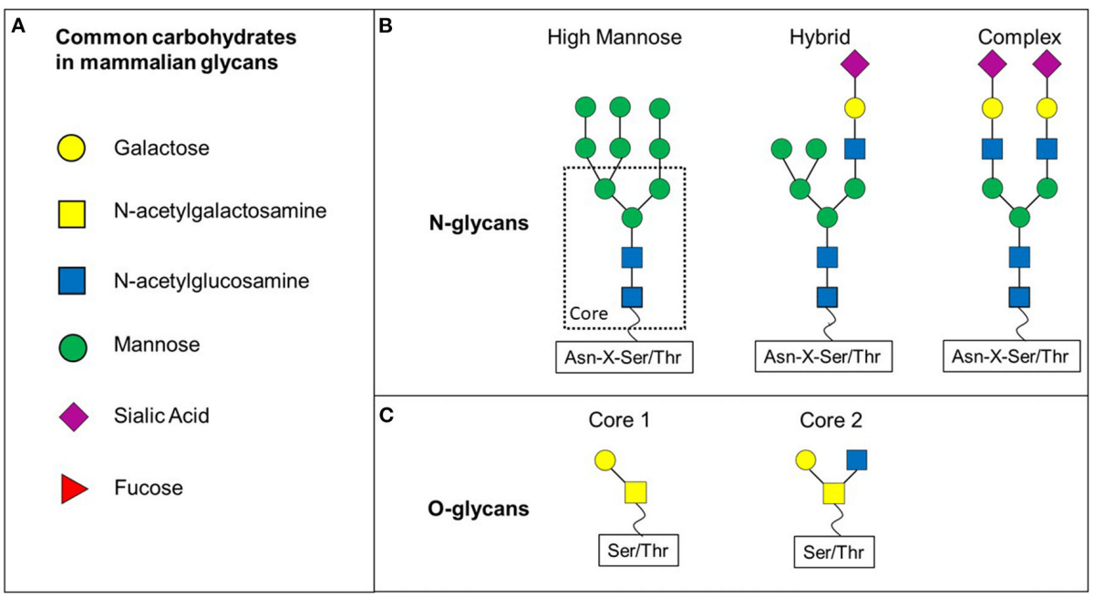 Fig.1 N- and O-glycan differ in their core structure.1, 2
