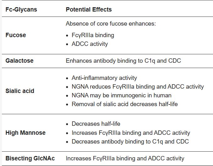 Fig.1 The most prevalent Fc-glycans have several potential effects on mAbs.1