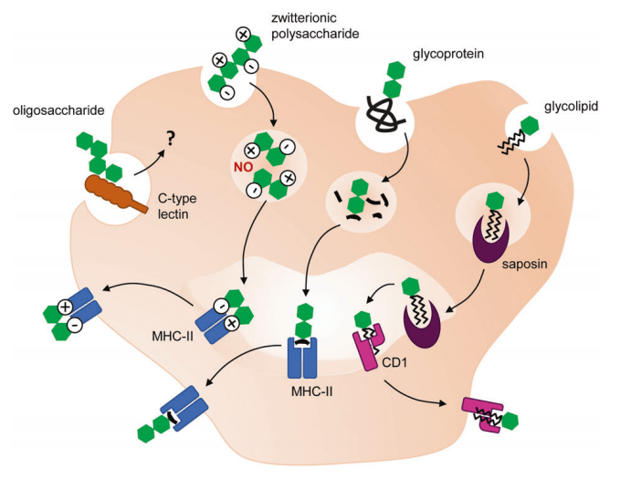 Fig.1 Antigen processing and presentation for different types of carbohydrate structures.1