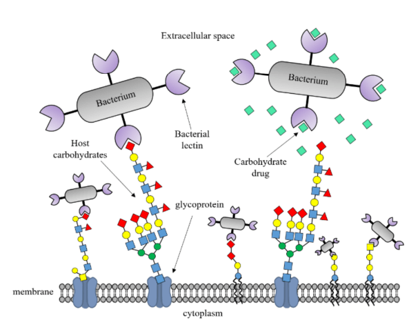 Fig.2 Schematic representation of lectin-glycan interactions in bacterial pathogenesis.1, 2