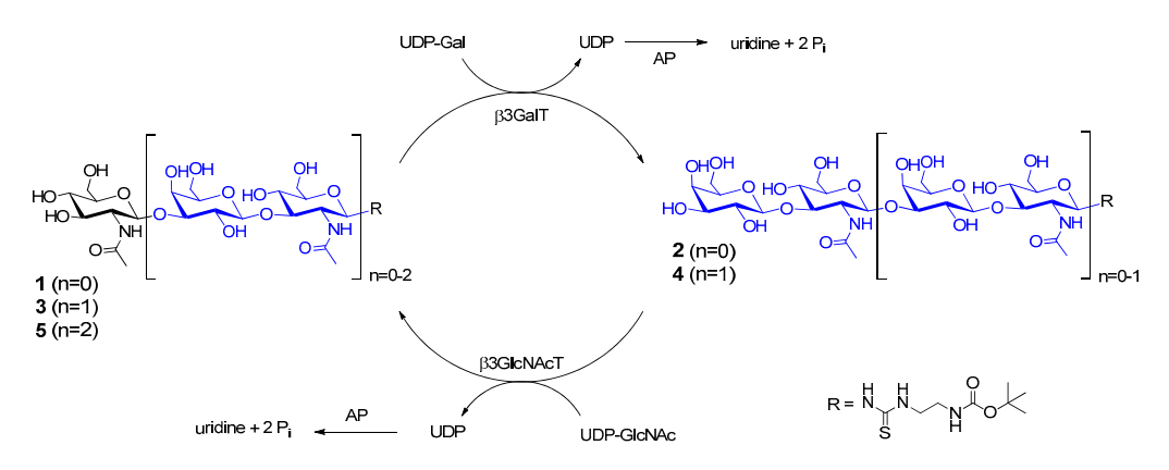 Fig.1 One-pot synthesis of LacNAc type 1 glycan oligomers 2–5.1, 2