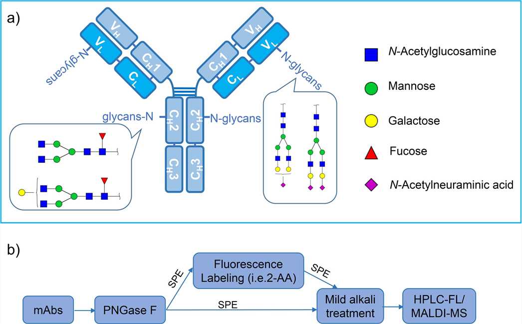 - Singh, Sumit K., and Kelvin H. Lee. "Characterization of monoclonal antibody glycan heterogeneity using hydrophilic interaction liquid chromatography-mass spectrometry." Frontiers in Bioengineering and Biotechnology 9 (2022): 805788. https://doi.org/10.3389/fbioe.2021.805788
