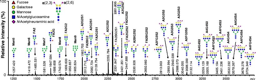 - Use exoglycosidase arrays or MS/MS fragmentation to determine branching, terminal residues (e.g., sialic acid, fucose), and linkage positions.