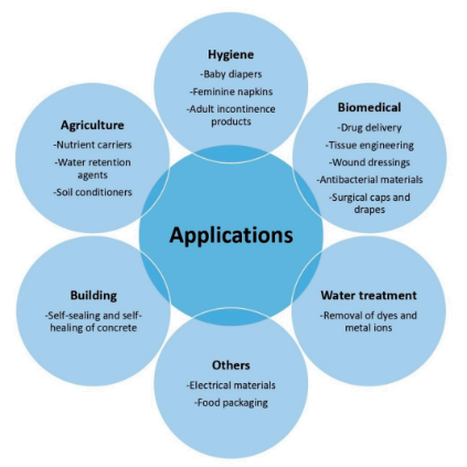 Fig.2 Potential and actual applications of polysaccharide-based superabsorbent.2, 3