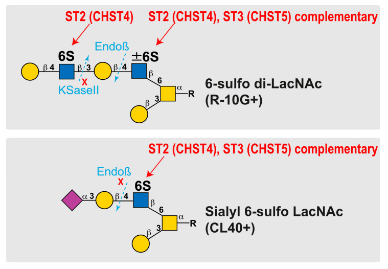 - Takeda-Uchimura, Yoshiko, et al. "GlcNAc6ST2/CHST4 Is Essential for the Synthesis of R-10G-Reactive Keratan Sulfate/Sulfated N-Acetyllactosamine Oligosaccharides in Mouse Pleural Mesothelium." Molecules 29.4 (2024): 764.