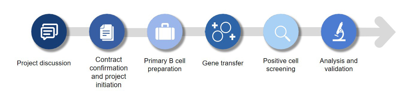 The major objective of our lab is to provide innovative customized solutions for B cell engineering. Our team will handle your R&D service management from the beginning to the end (requires customer consultation to start the project). The turnaround time and price in different B cell engineering projects.