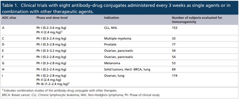 Immunogenicity of antibody-drug conjugates: observations across 8molecules in 11 clinical trials. Bioanalysis. 2019 Sep;11(17):1555-1568