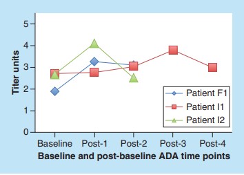 As for the ADA level, the total titer of those ADCs ranged from less than 1.30 to 4.92, and the average titer of all ADCs exceeded 2.50.