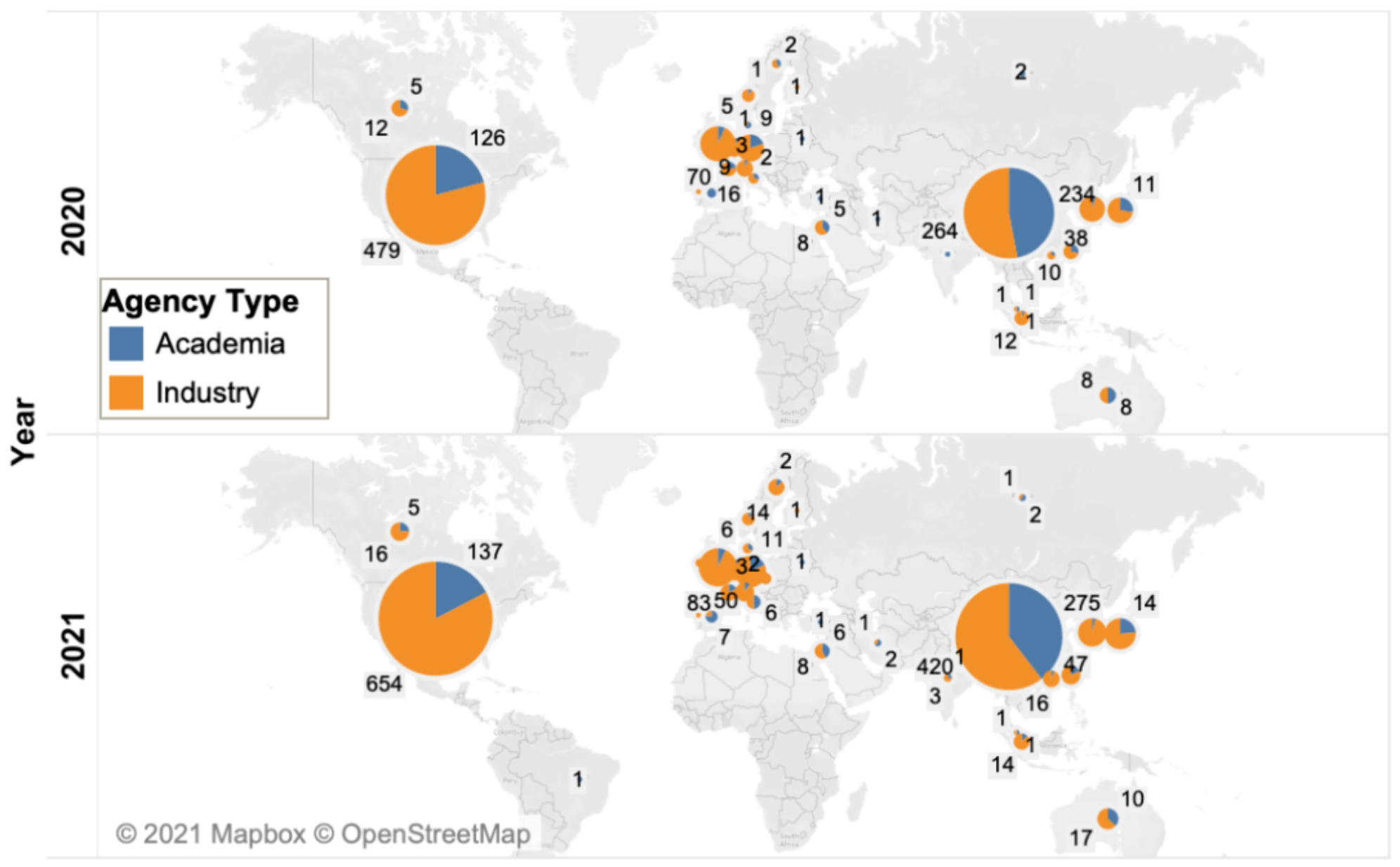 The distribution of cell therapy products from academic institutions and industry in China and the United States is basically the same as the previous year: most drugs in the United States (83%) are developed in industry, while in China, the proportion is more average, 60% in industry and 40% in academia.
