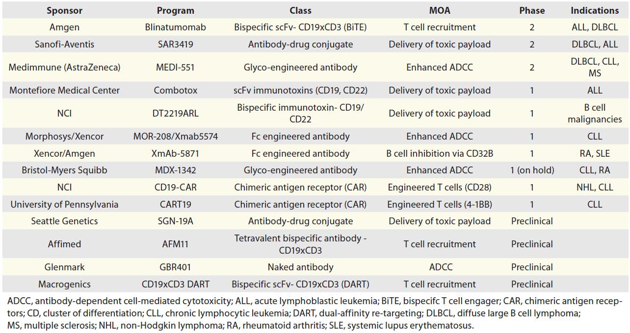 Table 1. CD19 immunotherapy programs in development