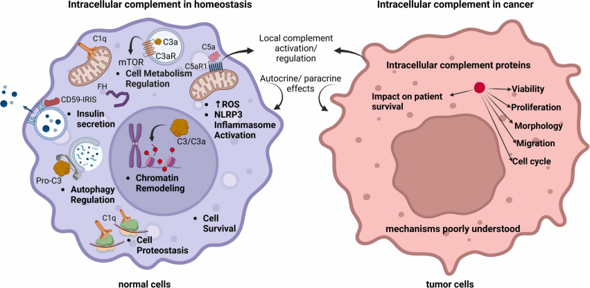 - Act intracellularly (forming the “complosome”) to regulate metabolism, survival, and cell cycle.