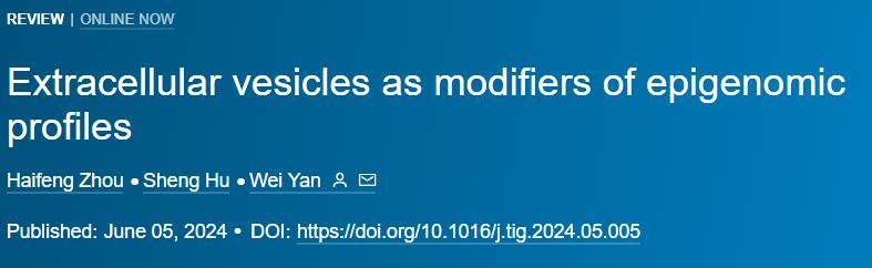 Haifeng Zhou et al. “Extracellular vesicles as modifiers of epigenomic profiles.” Trends in Genetics. Jun 5:S0168-9525(24)00109-4. doi: 10.1016/j.tig.2024.05.005