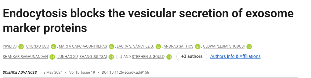 Ai Y, Guo C, Garcia-Contreras M, et al. Endocytosis blocks the vesicular secretion of exosome marker proteins. Sci Adv. 2024;10(19):eadi9156. doi:10.1126/sciadv.adi9156