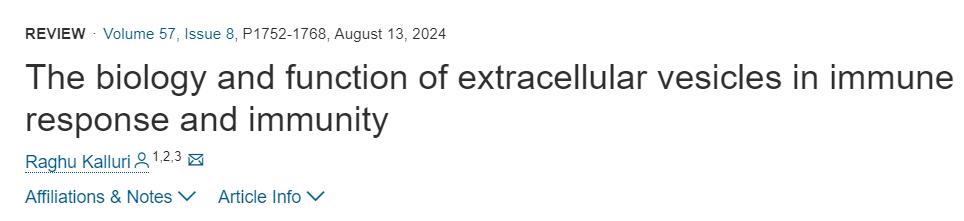 Kalluri, Raghu. “The biology and function of extracellular vesicles in immune response and immunity.” Immunity vol. 57,8 (2024): 1752-1768. doi:10.1016/j.immuni.2024.07.009