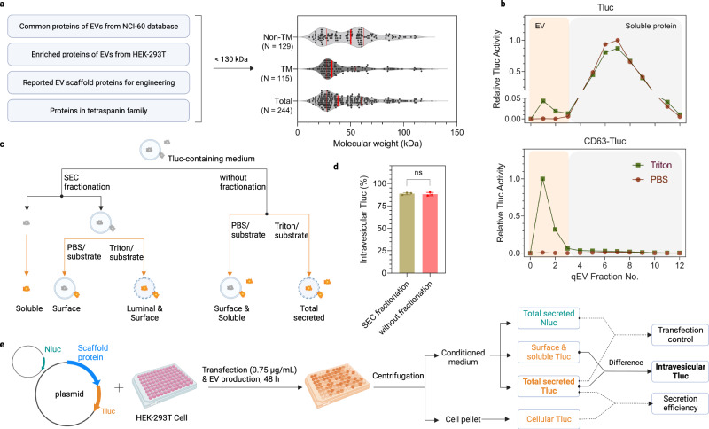 This study employed a straightforward and dependable assay capable of distinguishing between intravesicular and surface cargo proteins as well as non-vesicular proteins. The study screened 244 candidate proteins to identify 24 with consistent EV sorting capabilities across five producer cell types. TSPAN2 and TSPAN3 emerged as top candidates, surpassing the performance of the CD63 scaffold. Importantly, these engineered EVs showed potential as delivery vehicles in both cell culture and mice models, facilitating the efficient transfer of luminal cargo proteins and the surface display of different functional entities. The discovery of these scaffolds establishes a foundation for EV-based engineering.