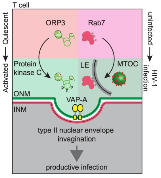 Santos, M.F., Rappa, G., Karbanová, J. et al. HIV-1-induced nuclear invaginations mediated by VAP-A, ORP3, and Rab7 complex explain infection of activated T cells. Nat Commun 14, 4588 (2023). https://doi.org/10.1038/s41467-023-40227-8