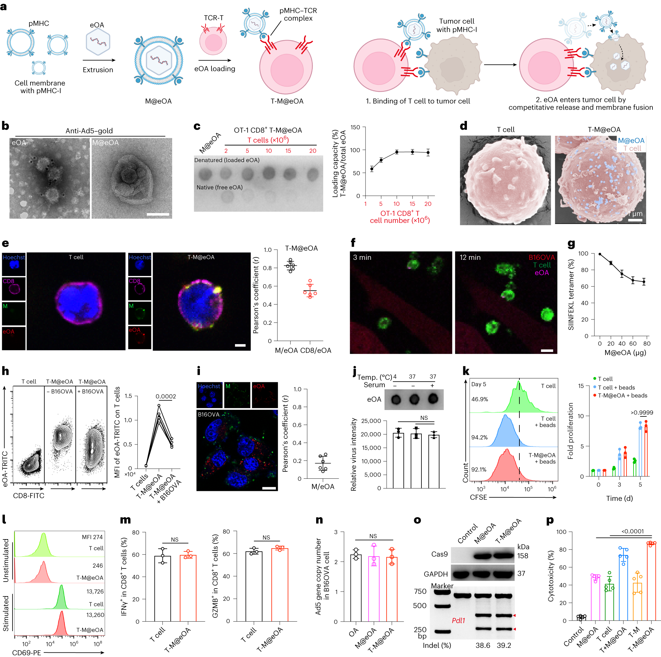 In this new study, the authors developed a treatment method that combines these two techniques. It is called ONCOTECH, which physically attaches oncolytic viruses—specifically oncolytic adenovirus—to the surface of T-cells using an engineered biomembrane with T-cell-specific antigens. It also involves encoding the CRISPR-Cas9 system to target the PD-L1 gene, which is often overexpressed by tumor cells to evade immune system attacks.