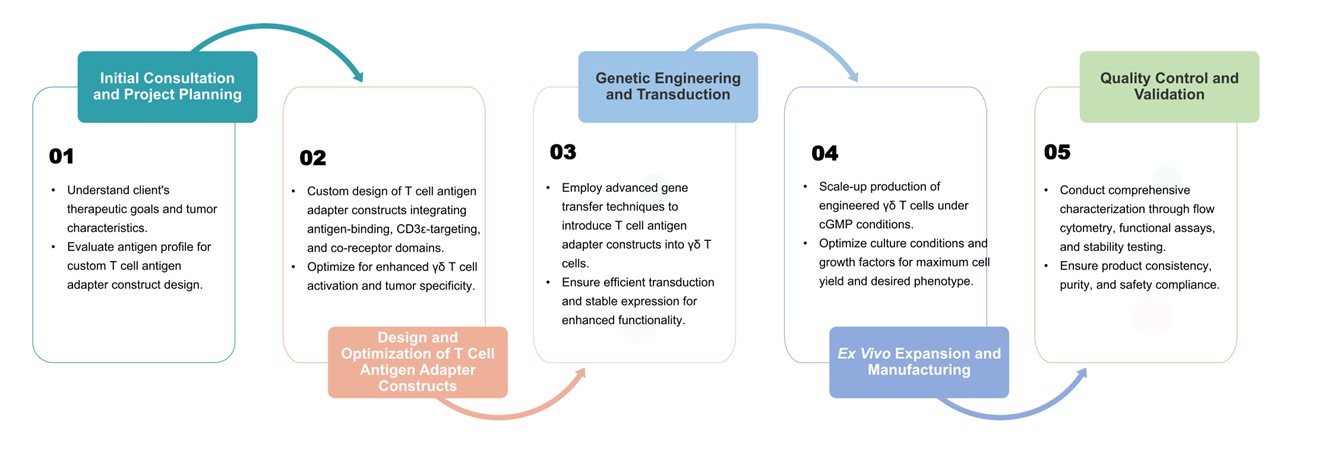 Creative Biolabs proudly introduces our Allogeneic γδ T Cell Development Service, leveraging cutting-edge T cell antigen adapter technology. Our T cell antigen adapter is composed of an antigen-binding domain, a cd3ε-targeting domain, and a co-receptor. We specialize in engineering γδ T cells to enhance their tumor-targeting capabilities, offering potent and personalized solutions in cancer immunotherapy.