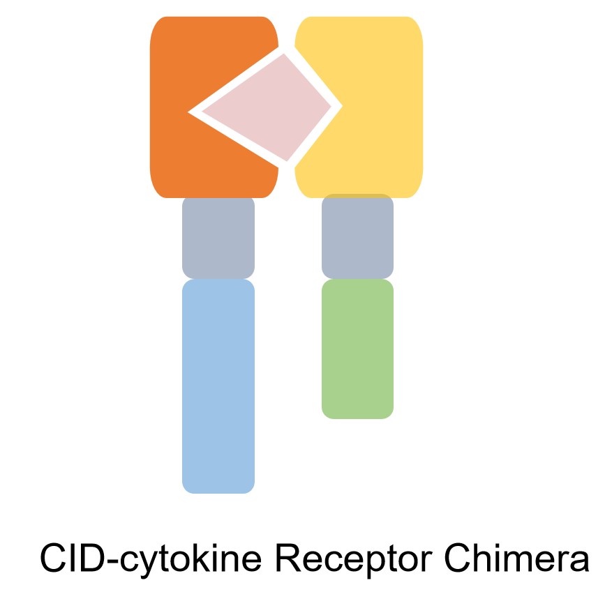 CID-cytokine Receptor Chimera stands for chemically induced dimerization cytokine receptor chimera. This is a type of chimeric receptor that can be specifically activated by a small molecule, which induces dimerization of receptors. This technique allows the regulation of CAR-T cell activity in response to small-molecule drugs.