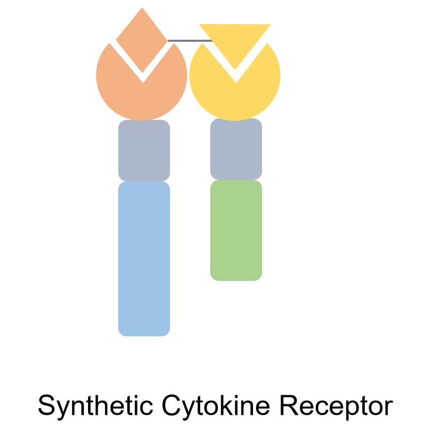 Synthetic cytokine receptors are engineered receptors that can be designed to respond to signals or ligands that are not naturally recognized by immune cells. With the use of artificial ligands, SCRs can selectively stimulate therapeutic cells without affecting other cells in the body. This can significantly improve the safety and precision of therapeutics, especially in cancer immunotherapy including CAR-T cell therapy.