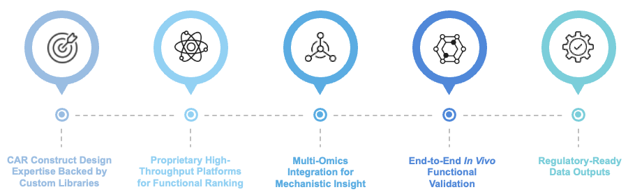 To help our partners accelerate functional validation and optimization of their CAR-T candidates, we offer a comprehensive Functional CAR-T Discovery and Development Service Platform. This fully integrated suite of solutions includes: