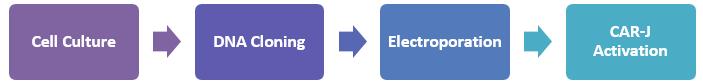 In the CAR-J method, CAR constructs are introduced into human Jurkat cells, a human leukemic T cell line, in the electroporation step. The Jurkat cells expressing the CAR constructs are co-cultured with target cells expressing the corresponding antigen followed by analyzing the activation of Jurkat cells expressing the CAR constructs through flow cytometry.