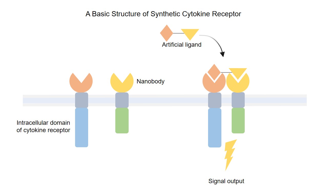 Prolonged stimulation leads to functional exhaustion and decreased efficacy of the CAR-T cells. To address this issue, researchers have developed a synthetic cytokine receptor that can be incorporated into CAR-T cells to control their activation. A synthetic cytokine receptor is a genetically engineered protein that has been designed to mimic the function of natural cytokine receptors. It specifically recognizes and binds to an artificial ligand to precisely control the activation of CAR-T cells in a customizable and tunable manner.