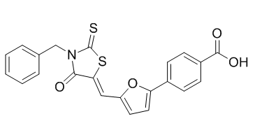 | SMILES | O=C(O)C1=CC=C(C2=CC=C(/C=C(SC(N3CC4=CC=CC=C4)=S)/C3=O)O2)C=C1 |