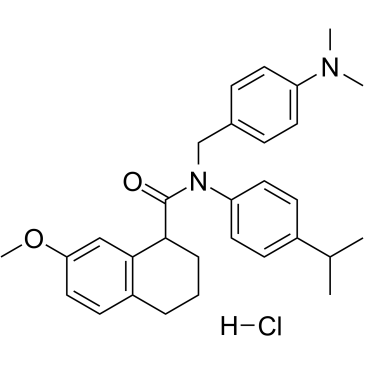 | SMILES | O=C(C1CCCC2=C1C=C(OC)C=C2)N(CC3=CC=C(N(C)C)C=C3)C4=CC=C(C(C)C)C=C4.[H]Cl |