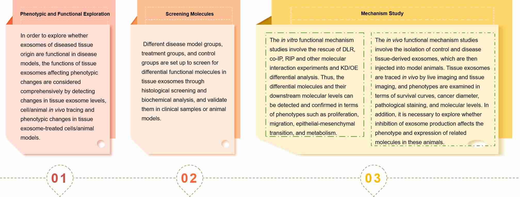 The functional examination of tissue exosomes is separated into three basic sections, including: